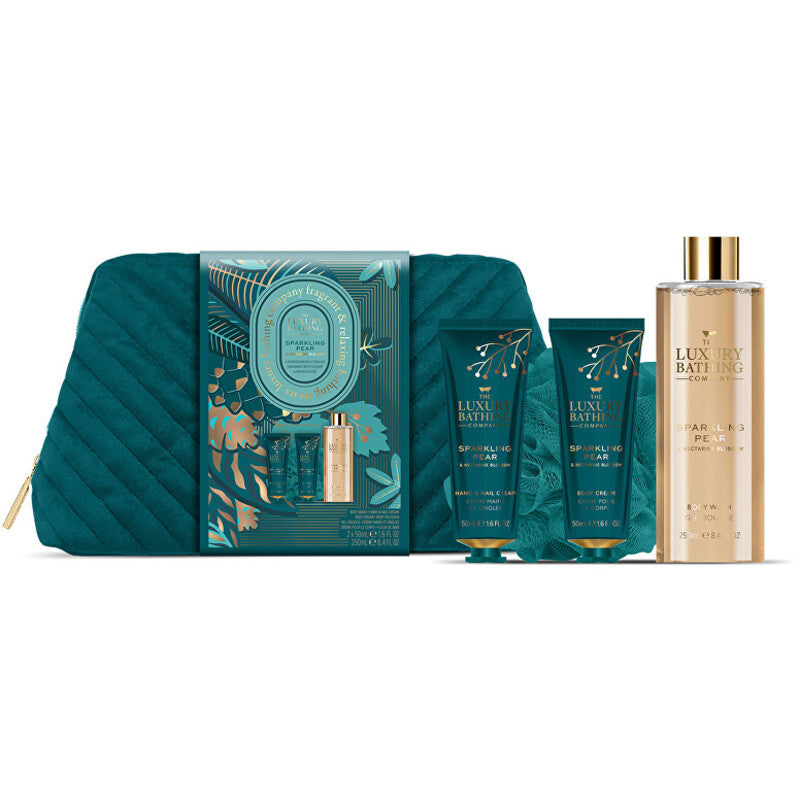 „Luxury Bathing Company“ kūno priežiūros dovanų rinkinys maišelyje (kriaušių ir nektarino žiedų)