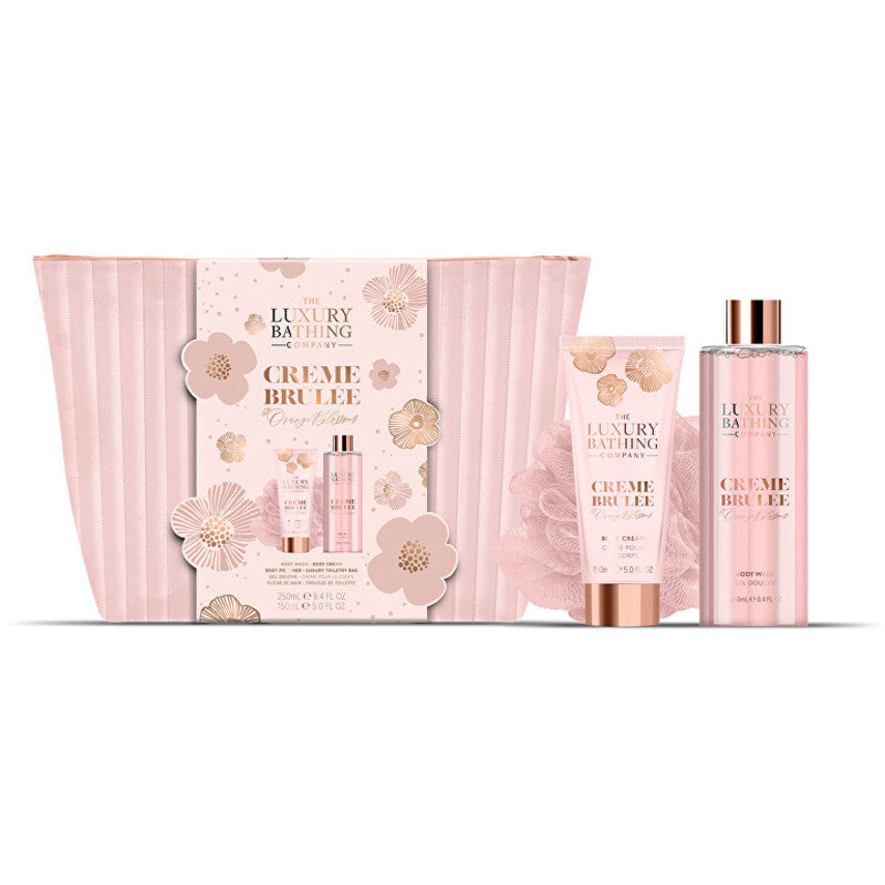 „Luxury Bathing Company“ kūno priežiūros dovanų rinkinys kosmetinėje (Creme Brulee, apelsinų ir vanilės)